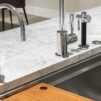 • Stainless steel under-mount offset double bowl sink with in-sink waste disposal