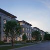 Centralized courtyard with paving stones and children’s play area serves as a warm, inviting outdoor living space for all residents to enjoy