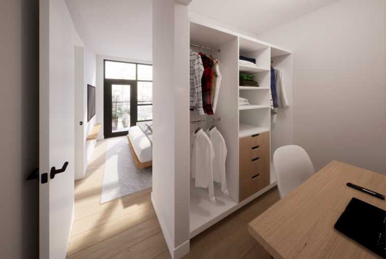 Once you experience the innovative design inside Ava’s homes, you’ll wonder why every home isn’t like this. Along with a clean, modern style, Ava is designed to flow with what you’re doing when you’re doing it. Hinged storage solutions, flip-down desks, built-in charging stations and mobile device storage, and the ability to open or close rooms through moveable walls are just some of the ways Ava adapts to you.