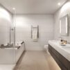 • Large format marble porcelain tile on vanity wall