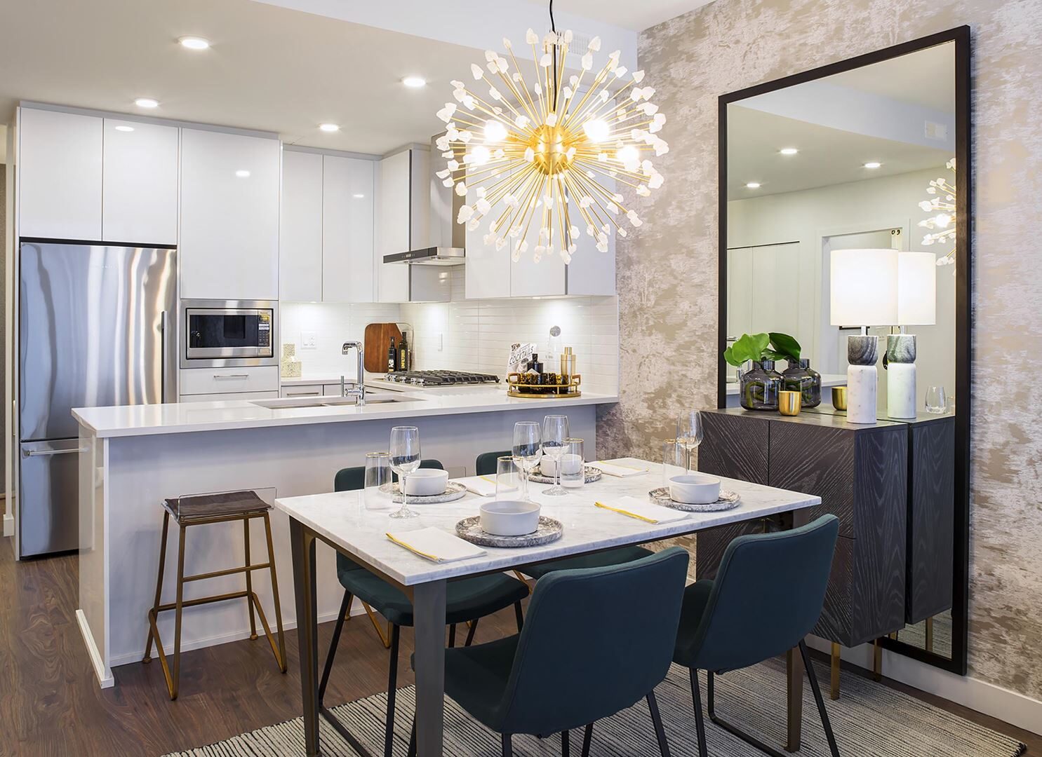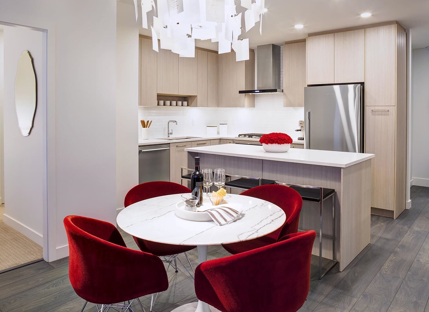 • Brilliant illumination with LED fixtures and under-cabinet lighting