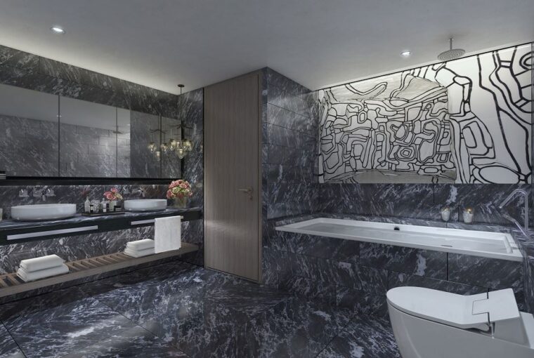 • Marble clad walls, floor, shower cabinets, walls and tub surrounds