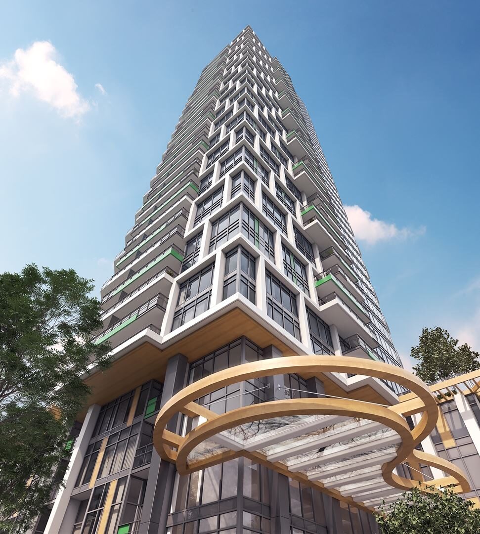 • Designed by Chris Dikeakos Architects Inc., Sophora at the Park impresses with a striking exterior along with a dramatic entry canopy, decorative screens