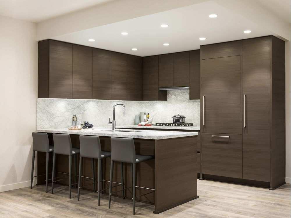 • Custom cabinetry with sleek integrated finger pulls, soft-close mechanism and large under-counter drawers